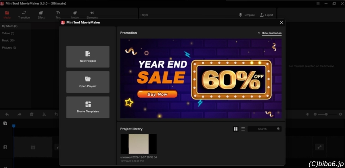 すると、「Mini Tool MovieMaker プロ・アルティメット版 5.3.0」が起動されました。